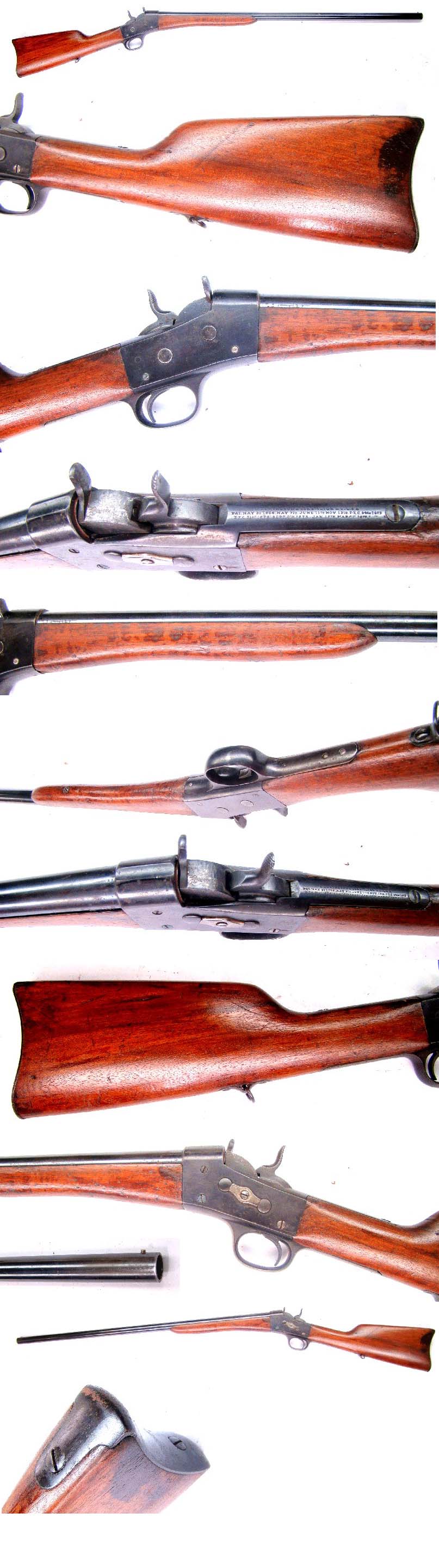 | Remington Rolling Block Shotgun 20 ga Bore VG nice bore, Mech Exc works well, Wood VG original military buttplate , Has a 30” Rd Barrel with brass bead front sight. The receiver is the thinner model than the rifles with sight groove on top. Has an excellent 3 line Remington address and patent date markings on top tang. Hammer has the shape of a sporting rifle. Metal overall has a fading blued finish with no pitting. Mfg’d 1870-1890. Can use 16 ga brass shells or 20 ga Paper shells |