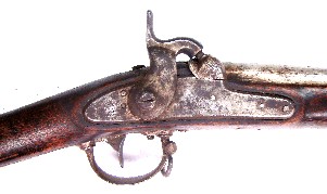 | Maynard 2nd Model 1863 Made 1863-1865 produced 20,202 ,Civil War Saddle Ring Carbine 50 cal Bore Exc, tight action, Has original stock with 2 excellent cartouche military markings and original buttplate, The receiver has excellent maynard markings on both sides or the receiver. The lower tang has the serial#25604 and dated 1865. Has an original 20” Rd barrel with original sights . Metal overall has an aged patina finish with the barrel having blue brown patina finish and the receiver having the look of old case colors. This is one of the lightest and easiest civil war carbines to shoot. |