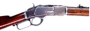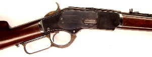 | Winchester Model 1873 Rifle ,Button Mag, 38-40 cal Bore has strong rifling with some very fine pitting, Mech Exc, Wood VG to near Exc has a light coat of old varnish. Has an original 24” Rd Barrel with original sights and excellent markings address and cal markings. The receiver has an original dust cover and has Model 1873 markings on the top tang also has been tapped for tang sight. The lower Tang has the Serial #352,871 Mfg’d 1890. The brass carrier has an excellent 38 cal marking. The stock has the original crescent buttplate with compartment. Metal overall has 40% Original blue finish fading with no pitting, A very clean and unabused rifle. Letters with cody. |